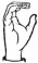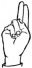 На ћирилици написано УРОШ РУСКИ састоји се из 9 слова [?]. Исписано ћириличном једноручном азбуком за глувонеме: